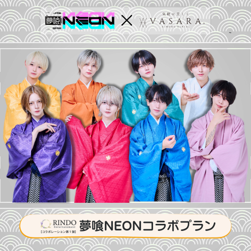 VASARAと夢喰NEONの特典付きコラボプランのご予約はこちらになります。 ワンスター・スタンダードの中から着物をお選びできます。 ※学割プランは、こちらのプランの対象外となります ※選択いただく着物は女性物になります。 ご来店時に差額のお支払いでMen’s、上位プラン、振袖、訪問着、袴へ変更可能です。 【特典】 「夢喰NEON」ロゴ入りアクリルかんざし 〈対象店舗〉 浅草寺店 浅草本店 浅草駅前店 池袋店 新宿駅前店 渋谷店 秋葉原神田明神店 銀座三丁目店 横浜駅前店 ※コラボ期間中の着物着用イベントで出演予定のアイドルメンバーがやむを得ない事情により出演を見合わせる場合でも、ご予約のキャンセル・返金につきましては、着物レンタルVASARAの通常のキャンセルポリシーに準じて対応いたします。 なお、イベント自体が中止となった場合に限り、キャンセル対応をさせていただきます。 あらかじめご了承のうえ、ご予約をお願いいたします。