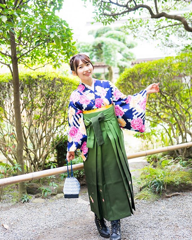 二尺袖と無地の袴を利用できるプランです。シンプルながら映える色を取り揃えています。二尺袖に近い色合い、もしくは反対色を選ぶのが袴選びのコツです。