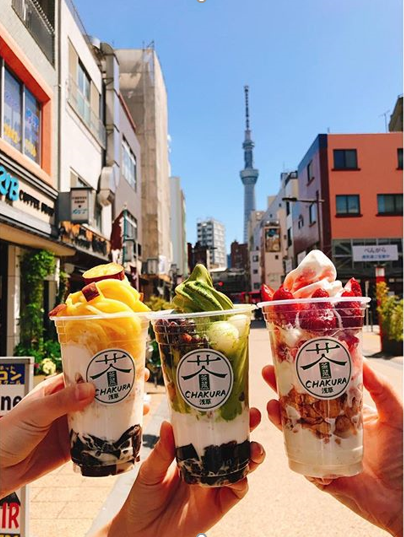 浅草寺で参拝を終えたら、「浅草茶蔵」で抹茶やゆず茶などのカフェドリンクを飲みに行きましょう。浅草は食べ歩きが豊富ですが、座って落ち着ける場所がなかなかありません。浅草寺から近くて椅子も用意されている浅草茶蔵は、休憩にピッタリですよ。抹茶スイーツや天然氷を使ったふわふわのかき氷も、つい頼みたくなる魅力的なインスタ映えメニューです。