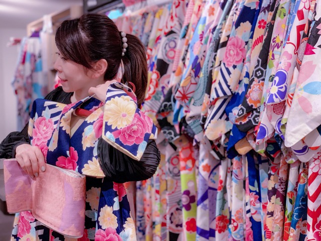 着物で浅草を散策すれば、まるで時代劇の世界に入り込んだような体験ができます。浅草に来たらまずは着物レンタルVASARAへ。受付とレンタルの簡単な説明を受けたら、着物と帯を自由に組み合わせて、お気に入りの着物姿コーディネートすることができます。普段は洋服では着ないような色やデザインの着物を着ると自分の新しい一面を知るチャンスになります。せっかくなのでチャレンジしてみてはいかがでしょうか。