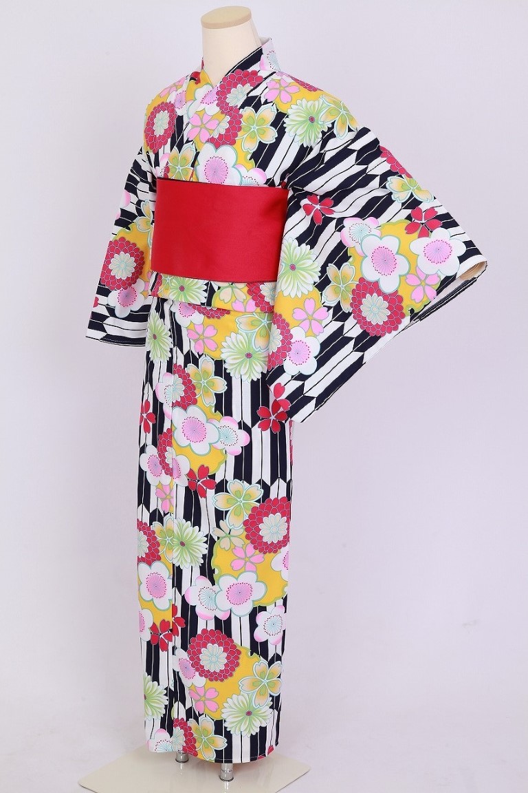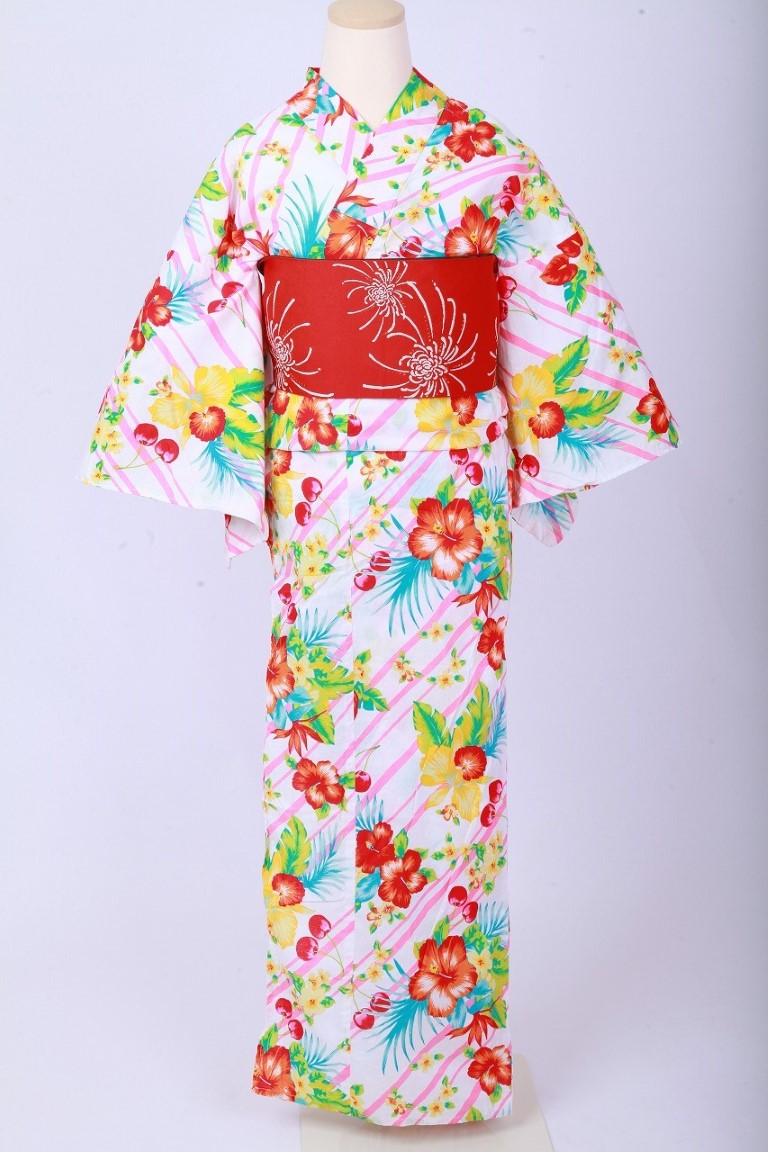 【夏らしいハイビスカス柄のカラフルな浴衣】